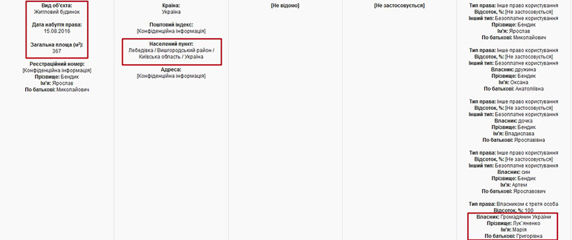 Саме за цією адресою зареєстрована фізична особа-підприємець Лук'яненко Марія Григорівна, основним видом діяльності якої є «роздрібна торгівля з лотків і на ринках іншими товарами». Чи могла пані Марія заробити цією діяльністю 16 млн. грн. на будинок та землю в Лебедівці – риторичне питання.