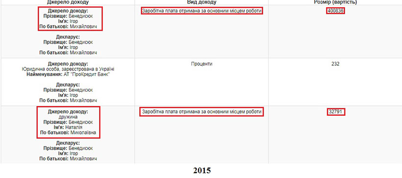 Щодо майнового стану, то, проаналізувавши декларації Ігора Бенедисюка за 2013, 2014, 2015 та 2016 роки, ми бачимо, що єдиним доходом судді, а потім – члена ВРЮ Бенедисюка була його заробітна плата.