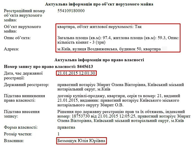 Дана квартира розміщена в центрі Києва, за адресою: вул. Воздвиженська, 50. Як зазначив прокурор, обійшлося їм це житло майже у 3,7 млн грн.