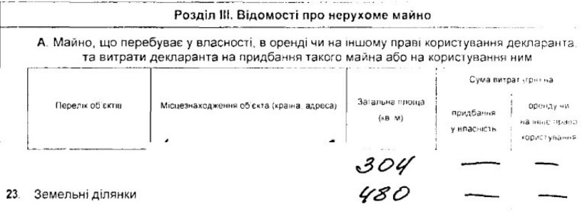 Натомість у декларації зазначений інший будинок Ірини Олександрівни. Власницею цього житла, площею 244 кв. м., пані Ірина стала у 2007 році, що обійшлося їй у 221 тис. грн.