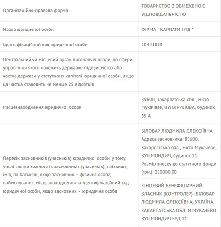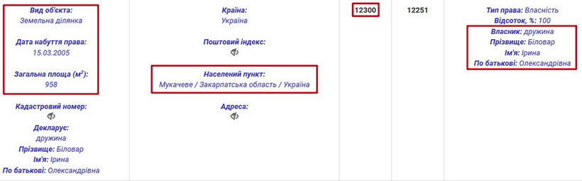 Дружина прокурора – Ірина Олександрівна Біловар – зареєстрована нотаріусом за адресою м. Мукачево, вул. І. Маргітича, буд.12, кв.1.