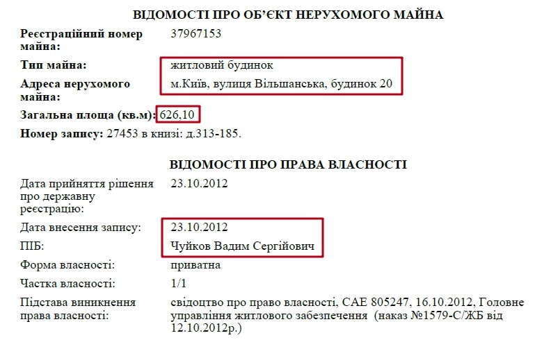 Проаналізувавши декларації прокурора, ми також виявили у власності його та його родини багато майна. Зокрема Вадим Сергійович володіє будинком на 626 м² та 8 сотками землі під ним. Будинок розташований у престижному районі на Печерську, на вулиці Вільшанській.