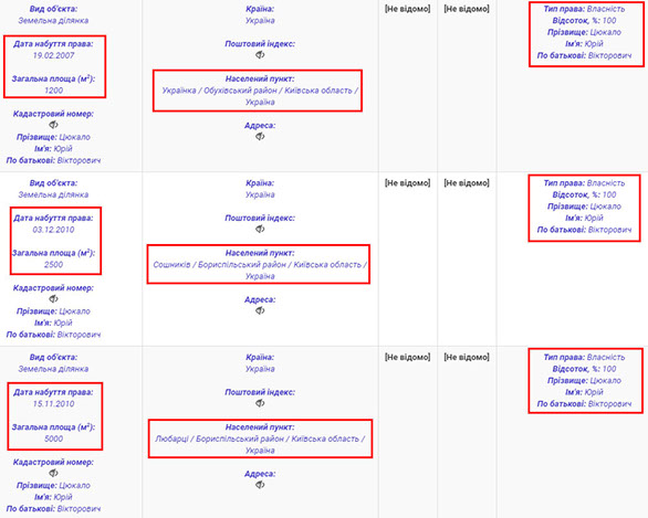 Однак у попередніх деклараціях нерухоме майно все ж було. У 2015 та 2016 роках суддя задекларував три земельні ділянки у межах Київської області сумарною площею 0,87 га. Дві з них набуті у власність у 2010 році, і одна 2007-го. До речі, жодна з них не вносилась у перові декларації, які суддя подавав до 2015 року. Тобто тривалий час суддя декларував недостовірні відомості.