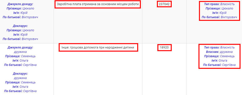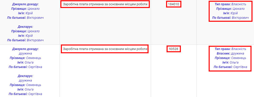 Ми провели аналіз майна родини Юрія Цюкала. У своїх деклараціях за 2013, 2014, 2015, 2016 та 2017 роки він декларує дохід лише від заробітних плат та допомоги при народженні дитини. За вказаний період суддя сумарно отримав винагороду від держави 1 002 755 грн, тоді як Ольга Семенець поповнила сімейний бюджет лише на 223 856 грн. У готівкових коштах подружжя зберігає 160 000 грн. І на цьому грошові ресурси вичерпуються.