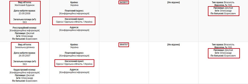 Проживає суддя у маєтку в Одесі на вулиці Бажана. Площа цього будинку 563 кв. м., а задекларована вартість – 643 тис. грн. У 864 тис. грн Олександру Джулаю обійшлася земельна ділянка, яка за розміром повністю збігається із площею будинку.