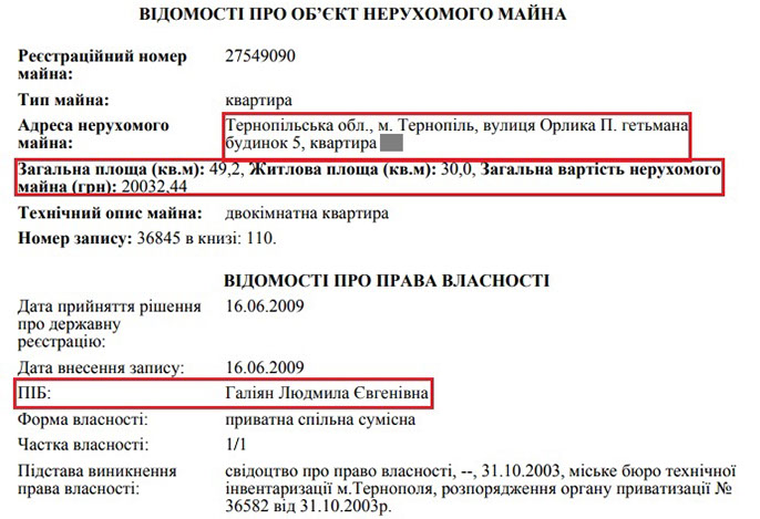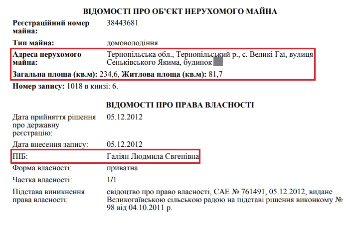 Традиційно цікавішою є ситуація з суддівським майном. Так, суддя Людмила Галіян володіє будинком площею 234 кв. м. у селищі Великі Гаї в передмісті Тернополя та квартирою площею 49 кв. м. у самому Тернополі.