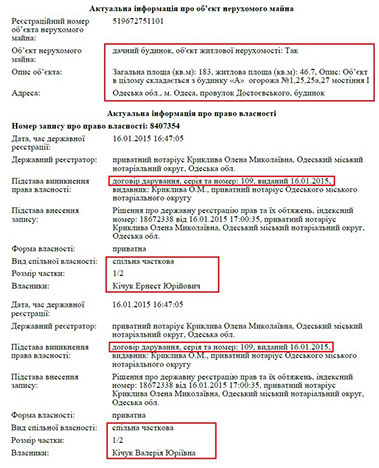 Цим подарунком для дітей виявився будинок в Одесі біля моря. Тож ми ще раз натрапляємо на випадок, коли найдорожчою нерухомістю у родині прокурорів володіють їхні діти.