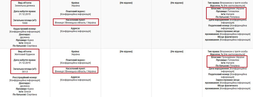 Власного житла суддя не має. Він разом із дружиною лише користується будинком на 361 кв. м. у Вінниці. Цікаво, що обоє отримали право на користування в передноворічну ніч, тільки суддя в 2013 році, а його дружина в 2015-му. Власником цього помешкання є Головатюк Наталя Петрівна, яка придбала його у 2012 році. Втім жодних видатків на оренду житла суддя не декларує, а отже, дуже ймовірно, що проживає родина Олега Курка в чималому будинку – безплатно.