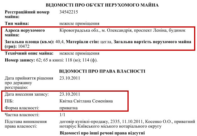 У Реєстрі також міститься інформація і про іншу квартиру – в окупованому Севастополі. Це помешкання було придбане у 2010 році й досі рахується за Світланою Квіткою.