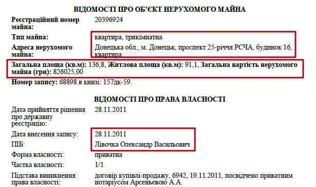 Більшість же свого майна прокурор із родиною мали в Донецьку. Однак у 2015 році Олександр Лівочка в інтерв’ю у ЗМІ повідомляв, що він займається розшуком бойовиків ДНР, а його нерухомість у Донецьку захоплено. Та, схоже, що така «ворожнеча» із терористами є дещо перебільшеною, адже з того ж таки 2015 року прокурор досить успішно продає усю свою нерухомість на тимчасово окупованій території. Так, наприкінці 2015 року йому вдається продати квартиру площею 136,8 м² у Донецьку за 1,5 млн грн. Її покупцем виявилася Алла Пилипівна Бухман – співзасновниця ТОВ «Донбас». Разом із нею керівником цієї компанії є Асояном Нодарі Жоржиковичем – громадянин Росії та відомий «злодій у законі». У 2016 році за 72 тис. грн прокурором та його дружиною було продано 2/3 ще однієї квартири в Донецьку. А у березні 2017 року Олександр Лівочка продав житловий будинок площею 208 м² у Донецьку за 1 350 000 грн.