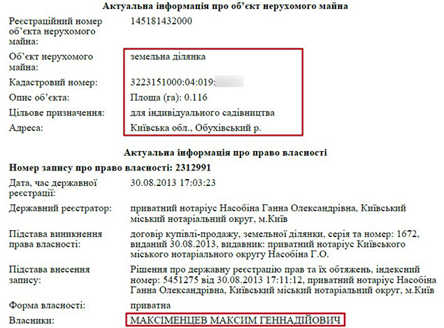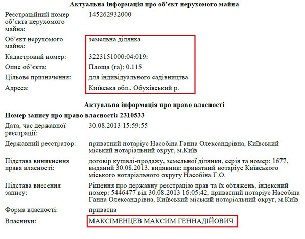 Також у Максима Максіменцева є дві земельні ділянки неподалік Козина. Їх задекларована вартість – 439 тис. грн.
