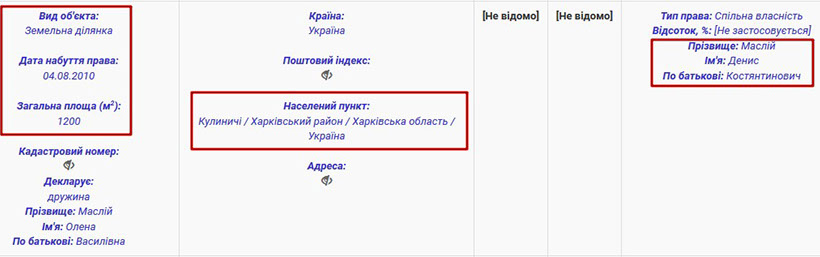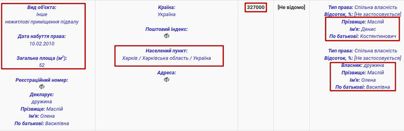 Та ще більшою за розміром, ніж будинок, є квартира подружжя. На превеликий жаль, цього житла немає в реєстрі речових прав на нерухоме майно. Тож всю інформацію про квартиру беремо із декларації Дениса Маслія. Площа квартири прокурорської родини – 255 кв. м., а вказана вартість – майже 2 млн грн.