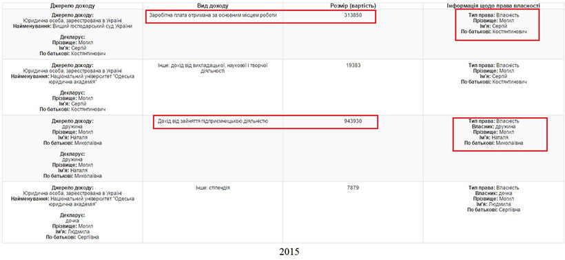 Яким же чином родині Могилів вдалося накопичити такі величезні суми коштів, придбавши водночас ще й елітні автомобілі та нерухомість? Питання, на яке декларації відповіді не дають.