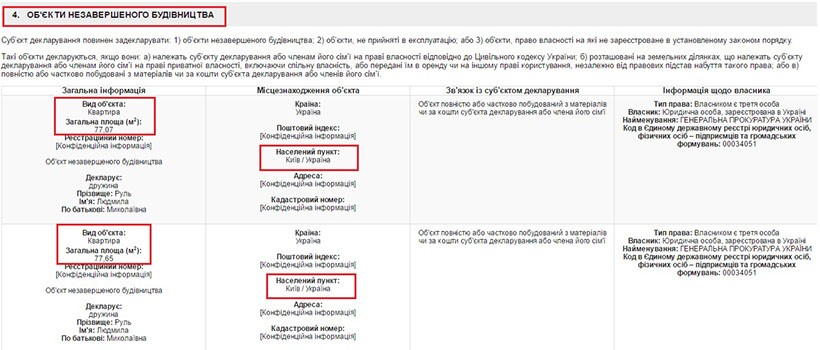 Сьогодні квартири такою площею у цьому будинку коштують щонайменше 150 000$ або біля 3 млн. грн. Це перевищує задекларований дохід дружини, але жодних кредитних зобов’язань нею не вказано.