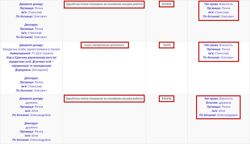 Ми проаналізували декларації Станіслава Рички за 2014, 2015, 2016 та 2017 роки. І ці декларації нас дійсно здивували. Нечасто побачиш декларації судді, який протягом декількох років декларує наявність понад півмільйона доларів при повній відсутності будь-якого іншого майна.