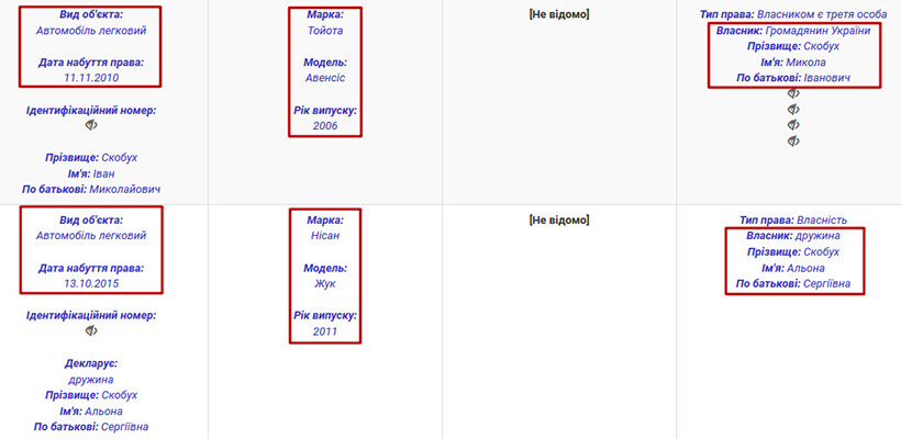 Та найбільше запитань до родини прокурора виникає з приводу нерухомого майна. Наприклад, у своїй декларації за 2017 рік Іван Скобух вказує право користування квартирою свого батька. Дата набуття права – 1 жовтня 2010 року. Це означає, що це житло мало би бути вказане в його деклараціях за 2014, 2015 та 2016 роки. Проте в жодній із них цієї квартири не згадано, що є очевидним порушенням правил декларування.