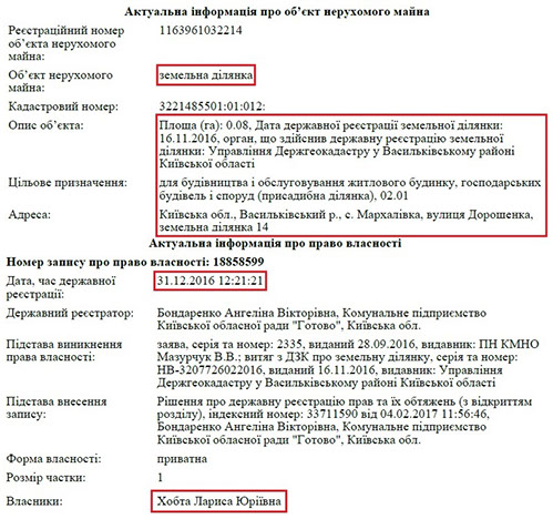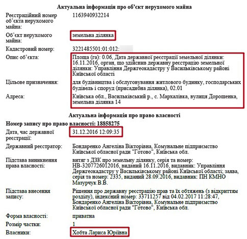 Також в декларації чиновника вказана земельна ділянка в Бориспільському районі на Київщині. Щоправда ідентифікувати її місцезнаходження не вдалося.