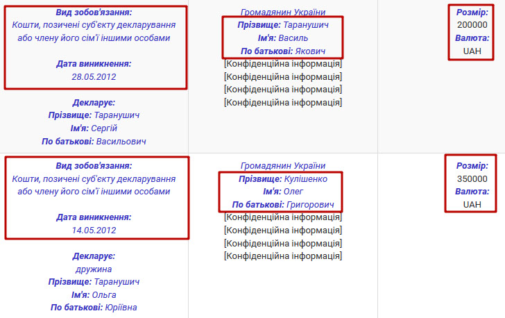 У тому ж 2012 році сам заступник прокурора області Сергій Таранушич позичив 200 тисяч гривень у свого батька – Василя Таранушича.