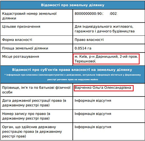 Щодо майна, то Ольга Варченко має квартиру в Києві площею 106 кв.м.. Ще одну квартиру в столиці, площею 114 кв.м., згідно з декларацією, орендує її чоловік.