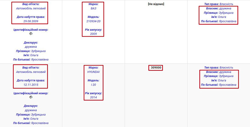 Не менш дорогими є також автомобілі прокурорської родини. Зокрема, Микола Іванович є власником Hyundai Santa FE 2013 року випуску, що був придбаний у тому ж році. Дивно, що прокурор не пам’ятає вартості свого новенького авто, однак, сьогодні воно коштує майже 37 тис. доларів. Ольга Ярославівна Зубрицька є власником Hyundai I 20 2014 року випуску, із зазначеною вартістю 309 тис. грн.